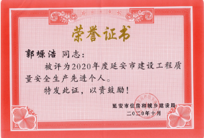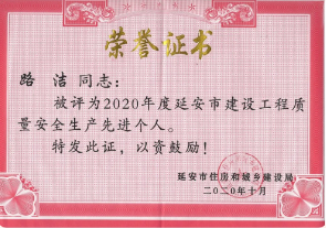 路潔、郭塬浩榮獲“延安市建設工程質量安全生產(chǎn)先進個人”榮譽稱號。