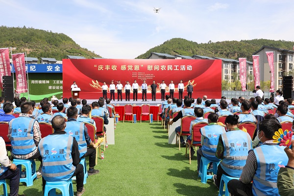 在第四個“中國農民豐收節(jié)”到來之際,9月22日,陜西省總工會走進陜建十三建集團延安南泥灣勞模工匠學院項目,開展“慶豐收、感黨恩”慰問農民工活動。