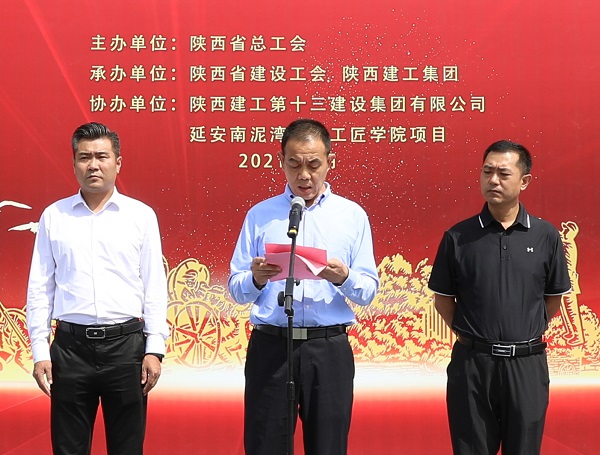 陜西建工集團黨委常委、副總經理劉小強在致辭中表示陜建作為我省最大的國企建筑鐵軍,在省委、省政府的領導下,在70余年的發(fā)展長河中,建設了一大批國防、科教、文衛(wèi)、公共服務等重點項目,積極服務于陜西發(fā)展和國家建設,既有深厚的文化積淀,又有雄厚的綜合實力。有幸承建延安南泥灣勞模工匠學院這個重點項目,我們倍感榮幸,倍加珍惜。我們已將該項目列為十三建集團的“一號工程”,調集精兵強將,以“出手必須出彩,完成必須完美”的作風、“開局就是決戰(zhàn),起步就是沖刺”的魄力,“努力到無能為力,拼搏到感動自己”韌勁,科學合理、協(xié)調高效的管理模式,將項目建設成為優(yōu)質結構工程、綠色施工示范工程,爭創(chuàng)魯班獎,為省總工會交上一份滿意的“答卷”。