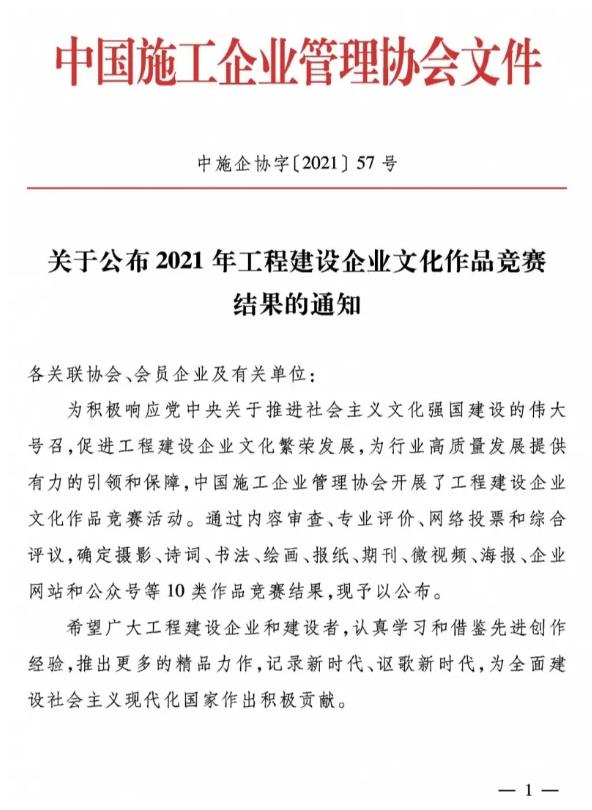 近日,中國施工企業(yè)管理協(xié)會公布了2021年工程建設企業(yè)文化作品競賽獲獎名單。陜建十三建集團企業(yè)官網(wǎng)和微信公眾號分別榮獲優(yōu)秀獎。