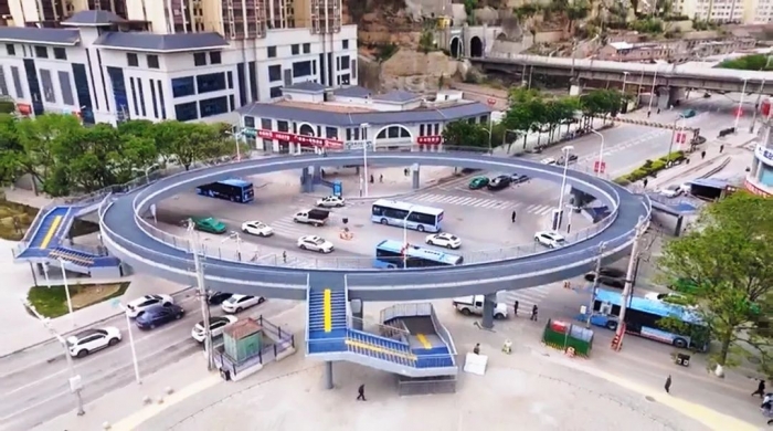 項(xiàng)目配建了一座四向互通式過街天橋--天橋設(shè)計為橢圓形,周長174米,欄桿高1.45米,橫跨柳林路及百合路,串聯(lián)七里鋪公園南北地塊與道路東側(cè)區(qū)域。天橋建成后,將有效解決二莊科十字路口人車混行問題,通行效率得到大幅度提升,為市民出行筑起了“安全屏障”。