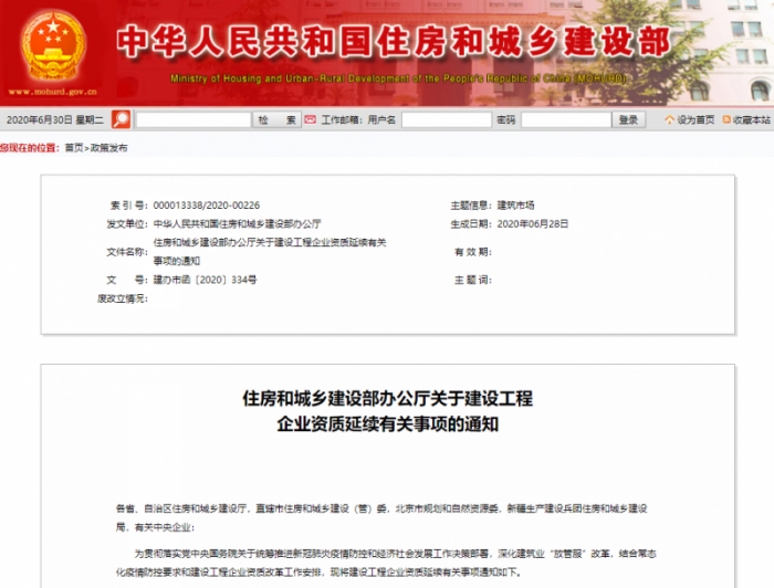 2020年7月1日前,住建部已受理的資質(zhì)延續(xù)申請(qǐng)事項(xiàng),不再進(jìn)行審批,相關(guān)資質(zhì)證書有效期延期至2021年12月31日。