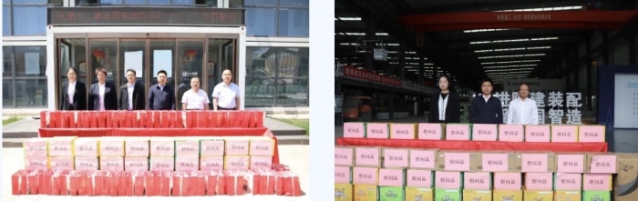 在五一國際勞動節(jié)到來之際,受集團黨委委托,集團黨委副書記、總經(jīng)理楊永宏,總工程師王弘起,總會計師劉小衛(wèi),紀委書記、工會主席李靜先后到信天游文創(chuàng)餐飲街項目、陜建(延安)新型建材公司慰問一線員工及工友,并將慰問品送到他們手中。
